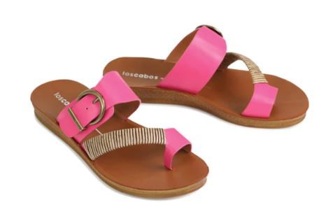 Los Cabos captures the spirit of fun in the sun with their Bria sandal. The ease of a slip-on is given a touch of natural beauty with our woven bamboo wrap gracing the toe strap, whilst the antique round buckle on the back strap adds a treasure box accent. Ideal for resort escapes, beach walks or just a shoe to slip on when you need to rush out the house.