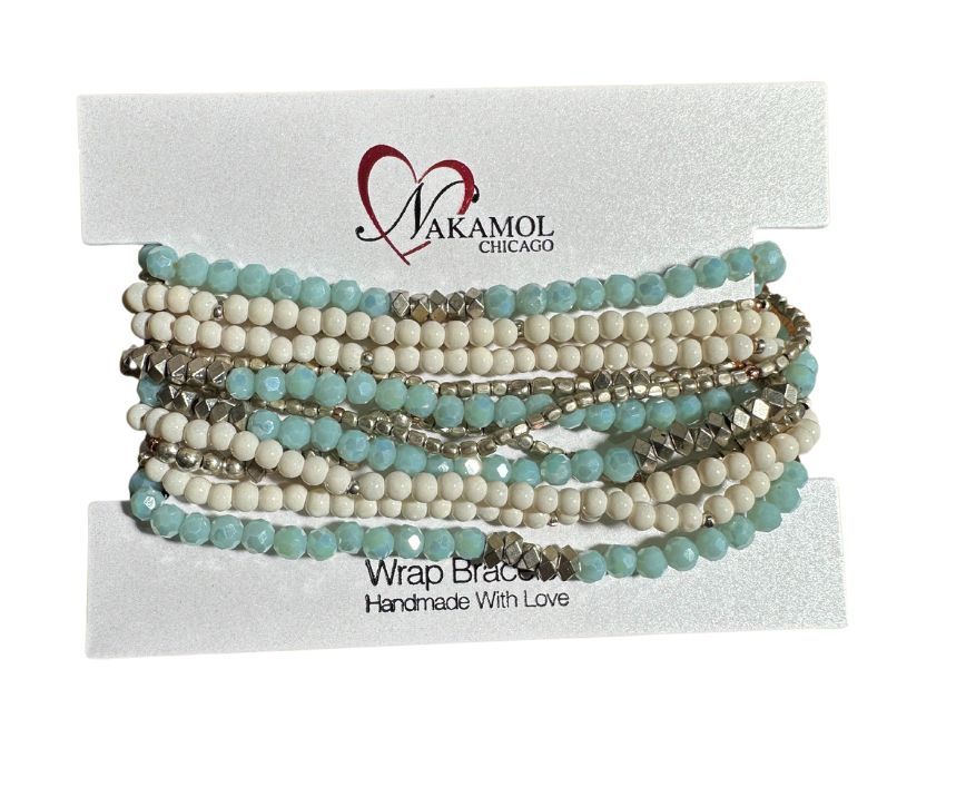 MULTI STRAND BEADED BRACELET W/ LEATHER CLASP