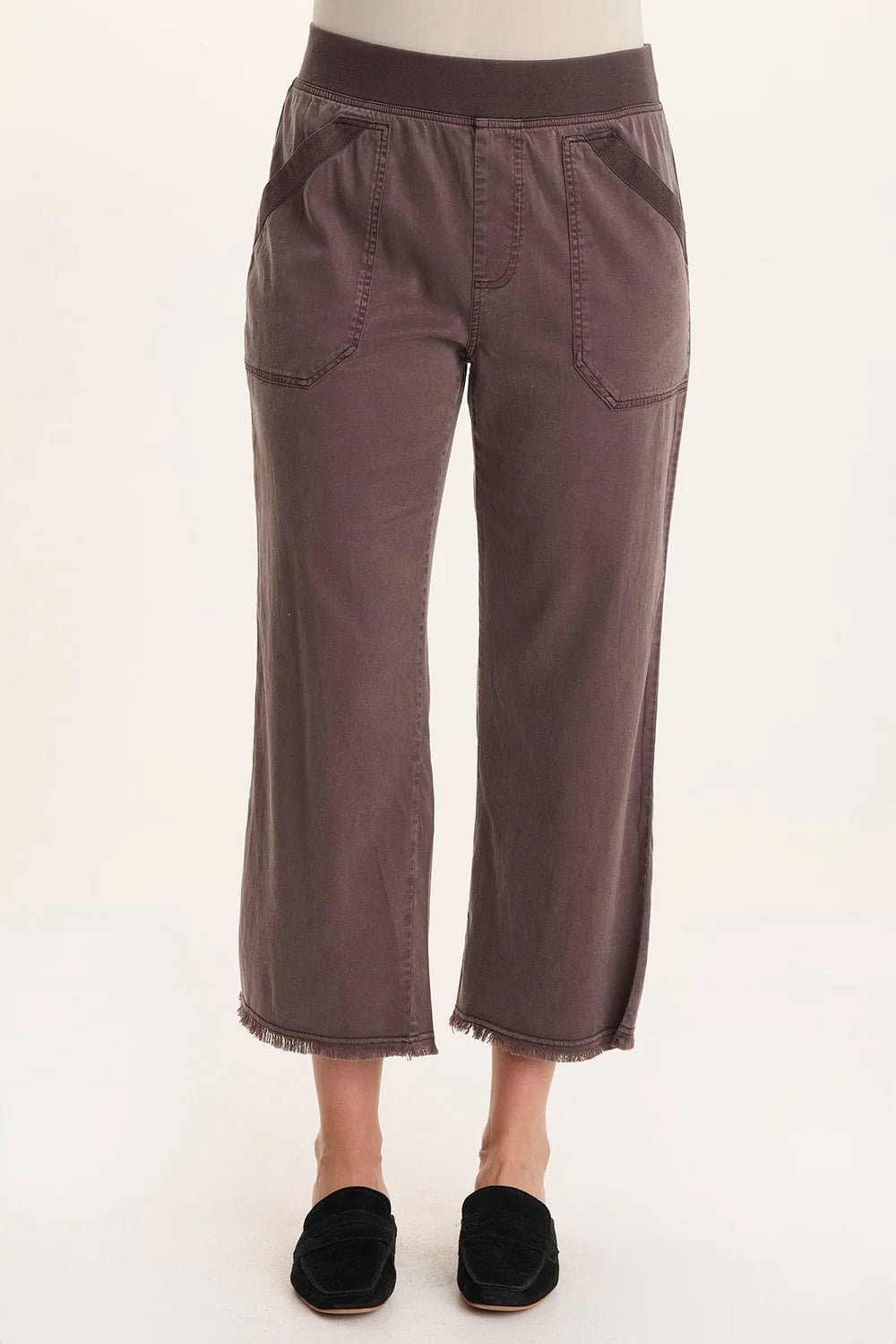 In soft, smooth Peachskin Tencel, Daga offers a pull-on waist style with a slight flared cut. Contrasting twill tape adorns each hip pocket, making Daga as functional as she is versatile.