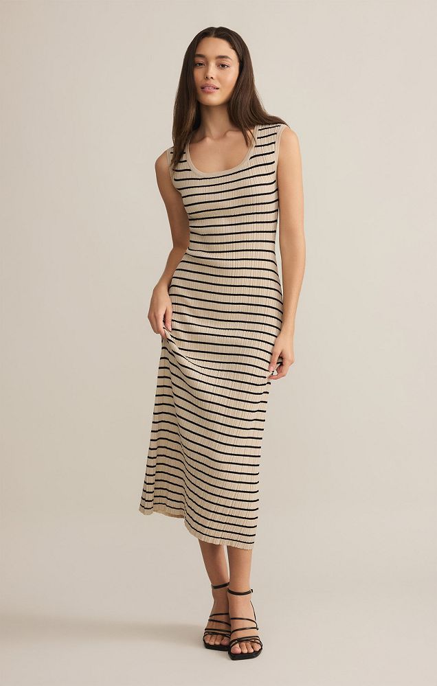 Crafted in a heavyweight knit fabric that hugs in all the right places, the Gisele Stripe Midi Dress by Z Supply features a scoop neckline and flattering cap sleeves.