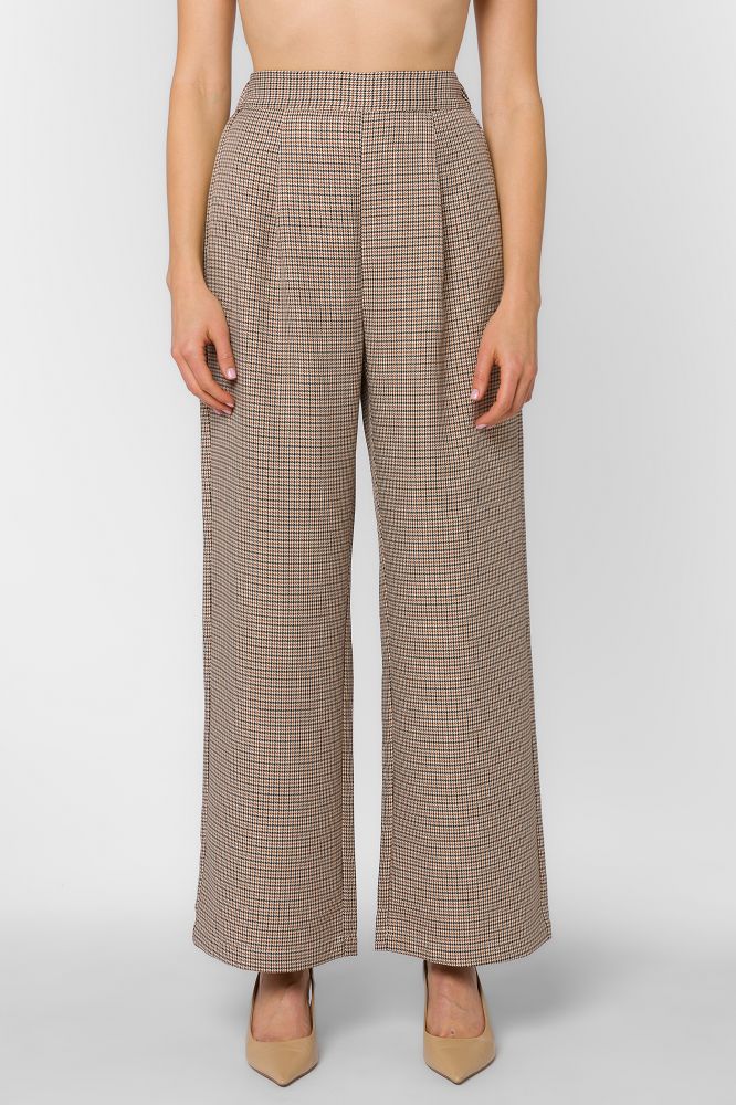 These houndstooth trousers offers a pull-on design with an elastic back waist and side pockets crafted from a medium-weight fabric with a soft, flowy drape.
