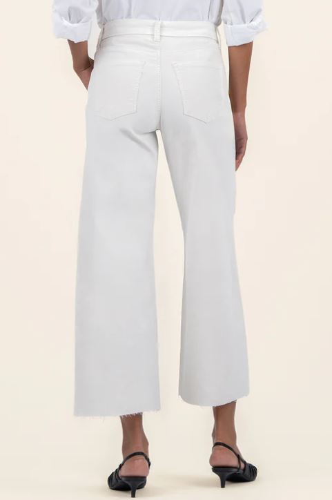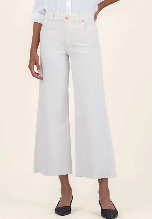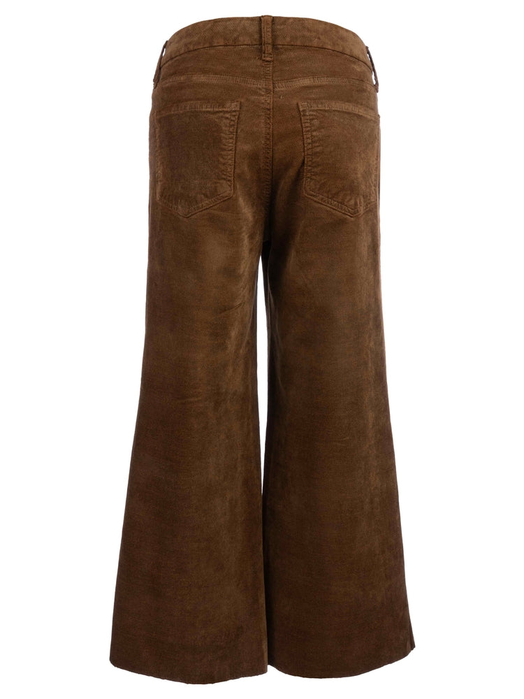- Plush velvet wide leg come through in casually elegant style with a high rise, Fab Ab front pockets that smooth and raw hem for a chic cool look.