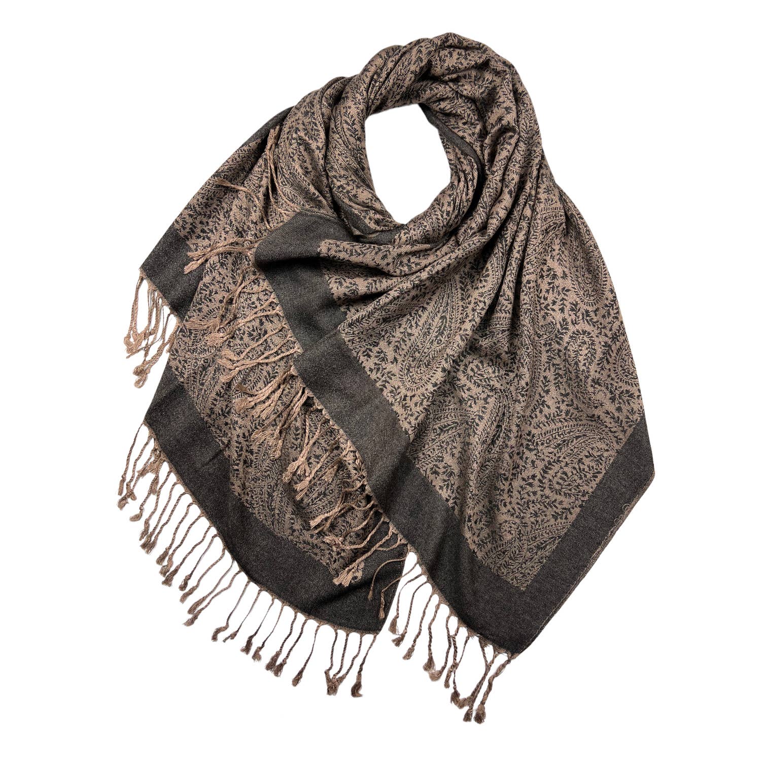 London Scarves - Plain pashmina with paisley print finished with fringes