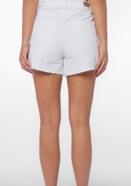 The Nova shorts features 5-pocket high waisted shorts with a raw hem and distressed details. These stylish shorts offer a flattering fit and edgy look. Perfect for any casual or dressy occasion.