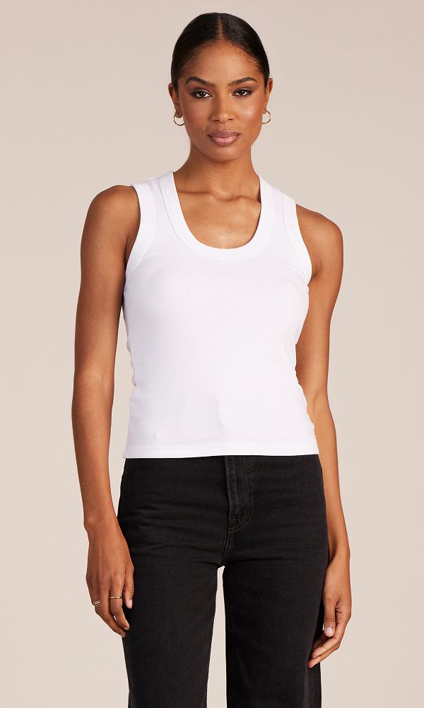Our fuzzy, slim rib tank is a great foundational piece or strong enough to wear on its own.