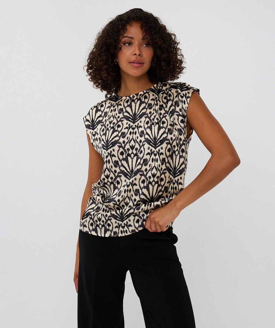 High-waisted top in our beautiful City Sign print. Wear this top under a beautiful black blazer, a black cardigan or a black jacket. The top is made of 55% viscose and 45% rayon. Model is 1.73m and wears size S.