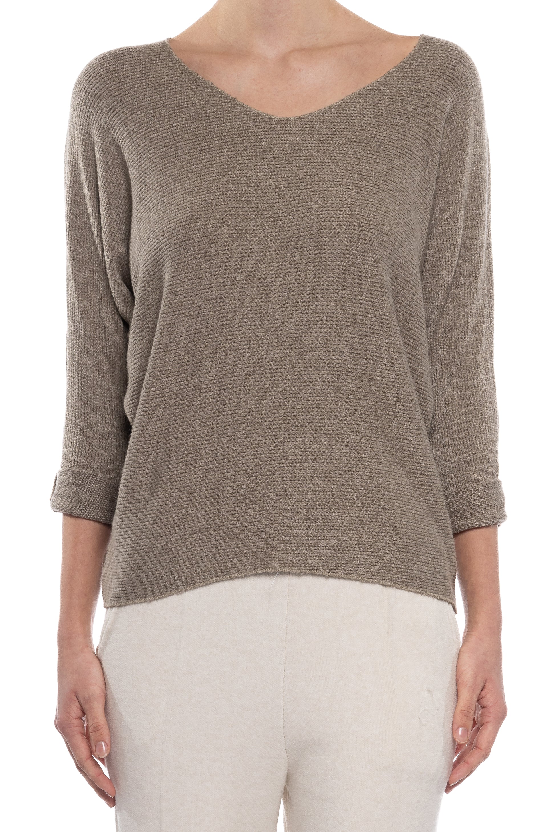 V-NECK RIBBED PULLOVER SWEATER